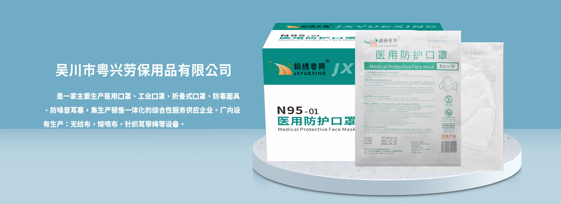 公司成立于2010年,位于廣東省經濟較為活躍的海濱城市-吳川市,廠房面積20000平方,擁有先進的生產設備、精準的檢測設備、精湛的生產技術、雄厚的生產能力并獲得相關的醫(yī)用資質以及工業(yè)防護資質。